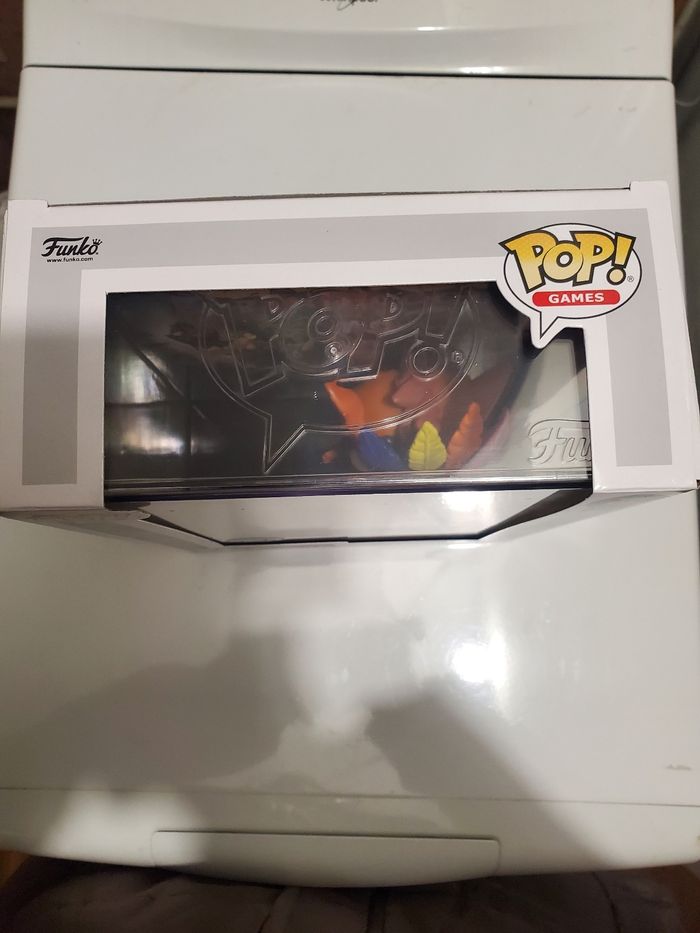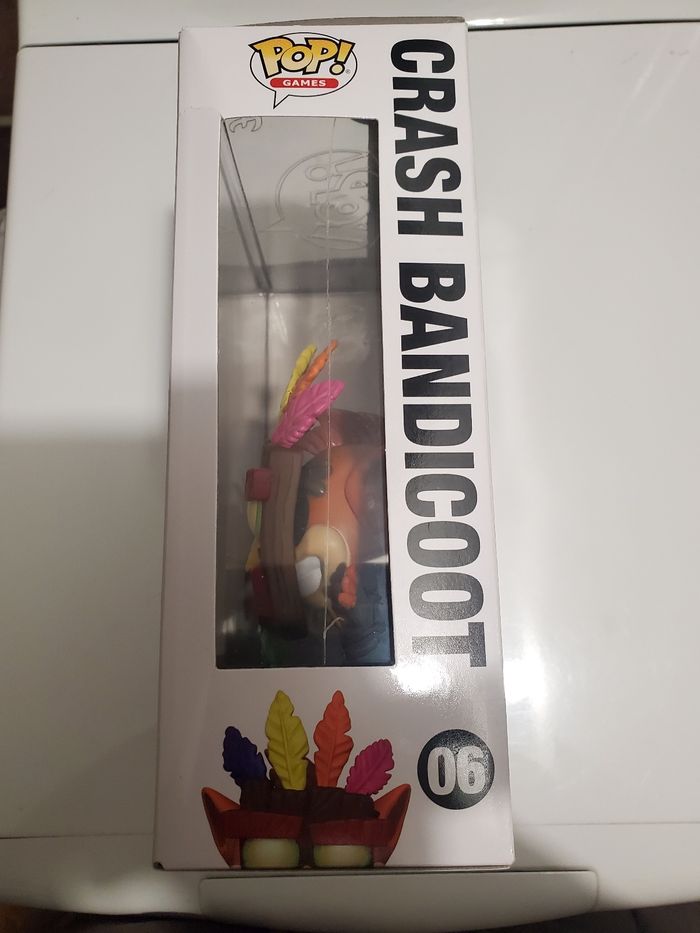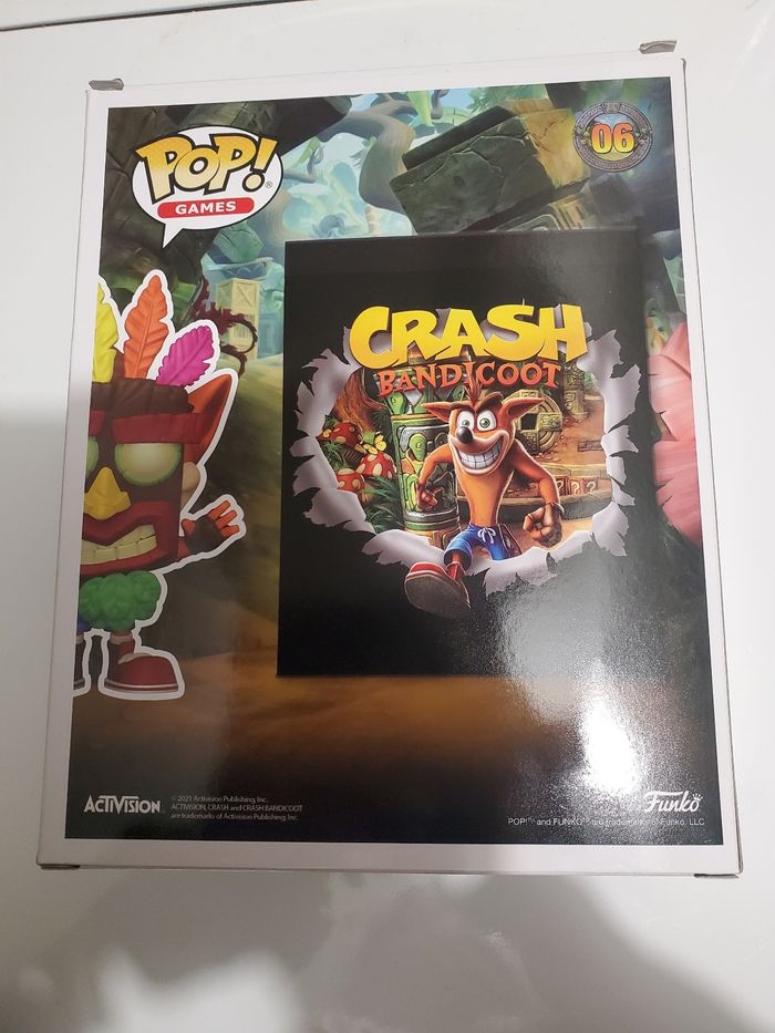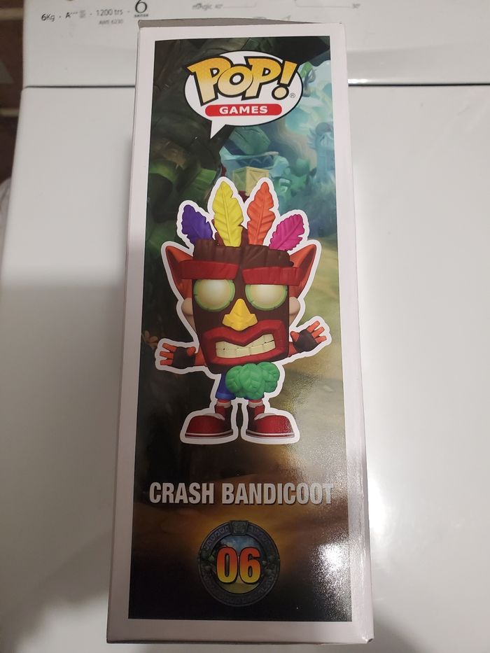Funko pop Crash Bandicoot n°6 neuve, encore dans sa boite d'origine. Le décor peut s'accrocher au mur (ou avec la boite) et la figurine est détachable à l'arrière.