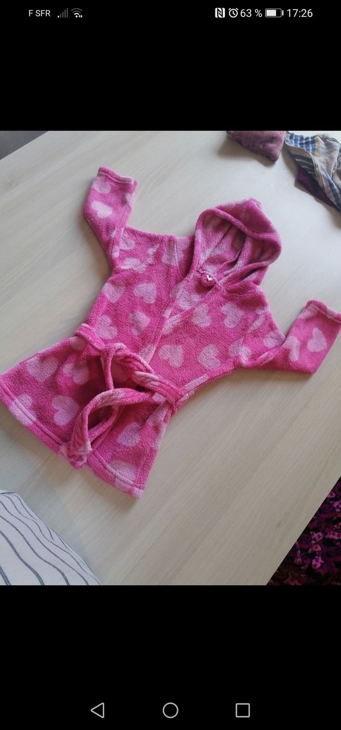 Peignoir rose avec cœurs en très bon état taille 86/92