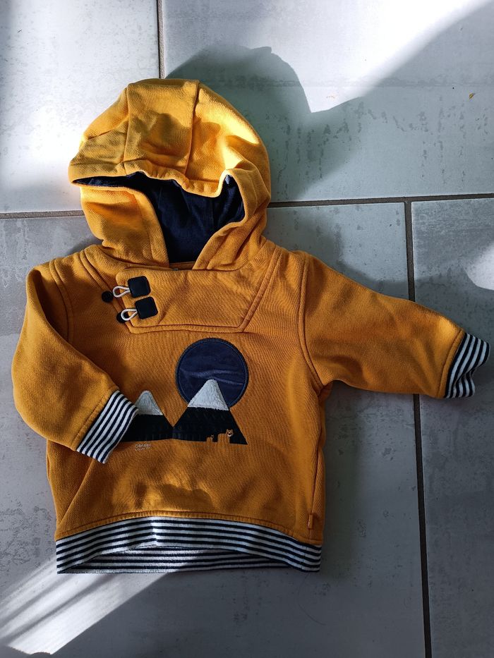 Joli sweat motif montagne Le col s'ouvre avec les boutons pour laisser passer la tête