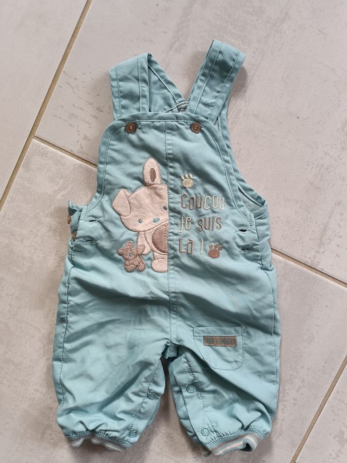 3 mois matière confortable plutôt chaude (doublée) Ouverture jambes, bretelles réglables en 2 boutons