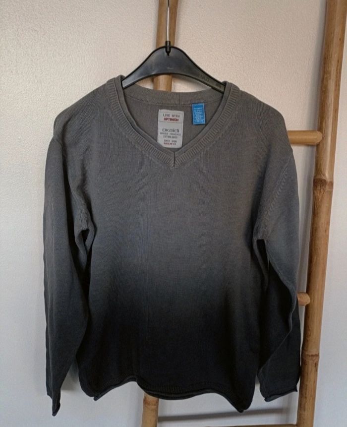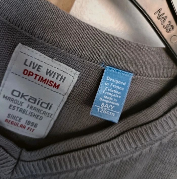 Pull gris bi color dessin dans le dos En parfait état. Okaïdi