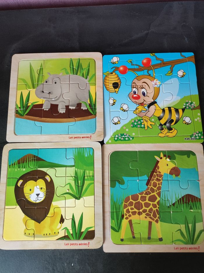 4 petit puzzles en bois. La girafe est un peu abîmé (voir photo)