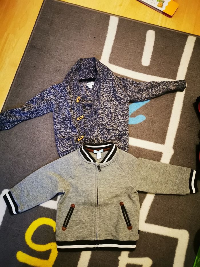 1 gilet bleu 1 sweat gris