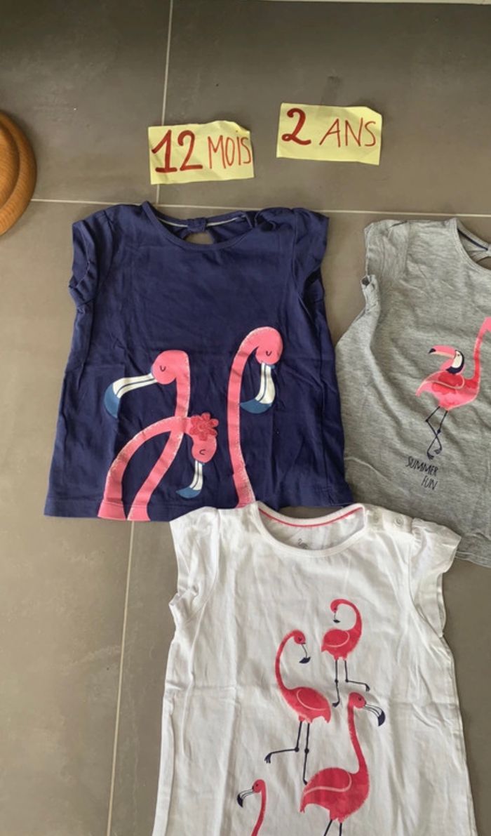 2 t shirt manches courtes 12-24 mois flamands rose neufs Le gris est déjà vendu Reste le bleu et blanc #virginielp1703fille12mois #virginielp1703fille18mois #virginielp1703fille2ans