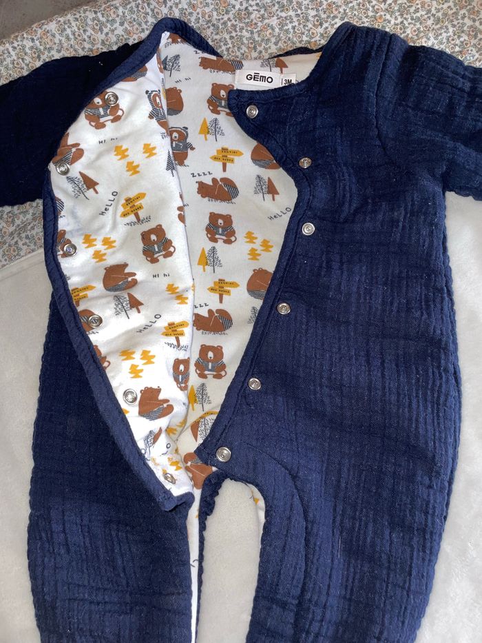 Combi bleu marine avec intérieur à motif bien chaude en 3 mois jamais mis juste lavé