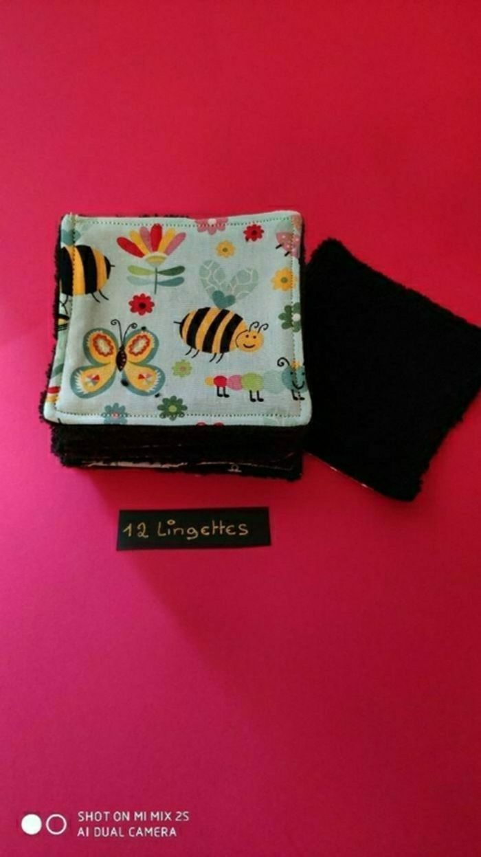 Tissu eko-tex français et éponge bambou noir, 10 X10 cm, pour bébé et démaquillante pour les mamans 😄