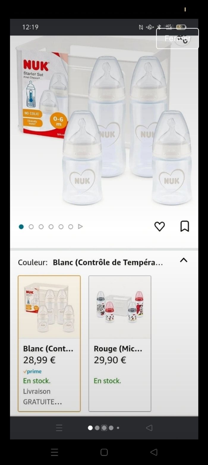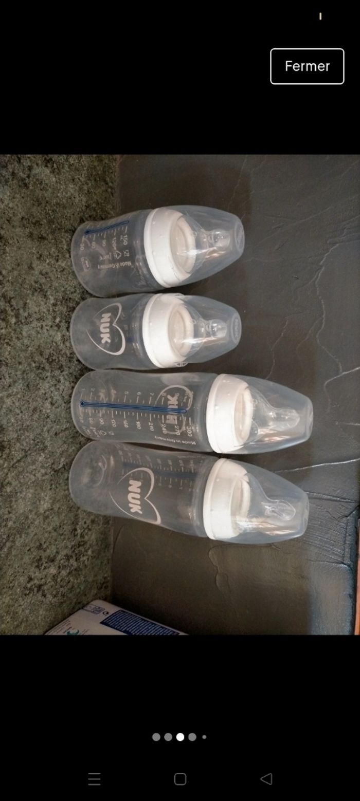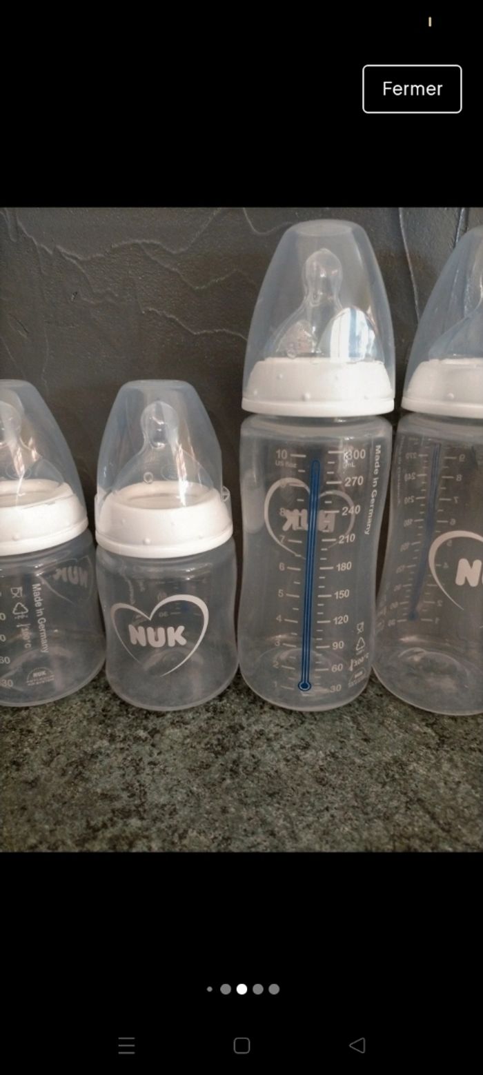 Biberons NUK thermorégulateur Deux biberons 150 ml tétine S Deux biberons 300 ml tétine M + 1 biberon 150 ml offert. Lot neuf, acheté 28,99€
