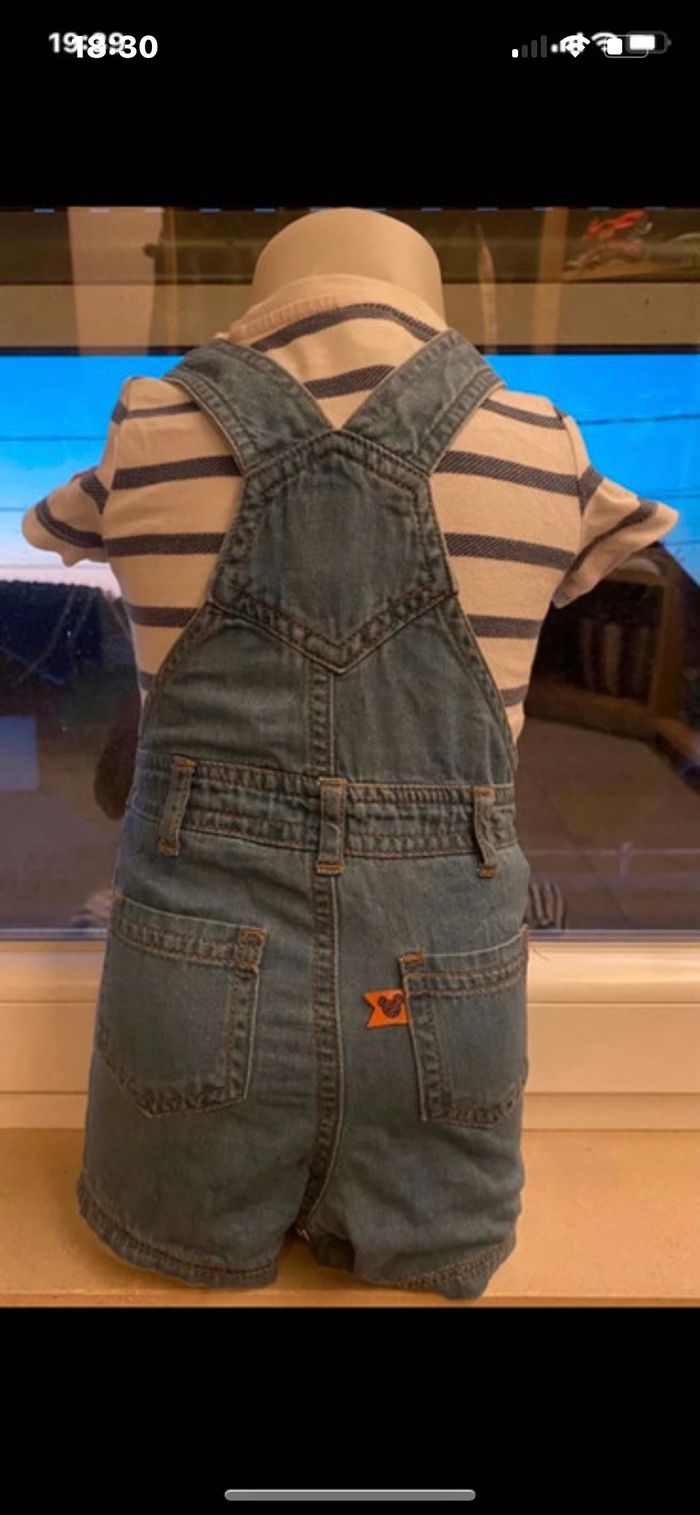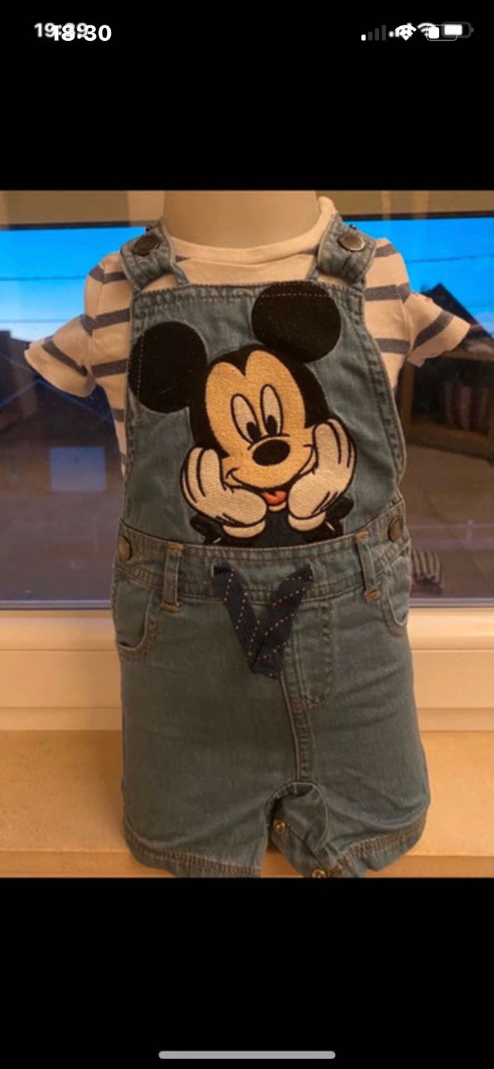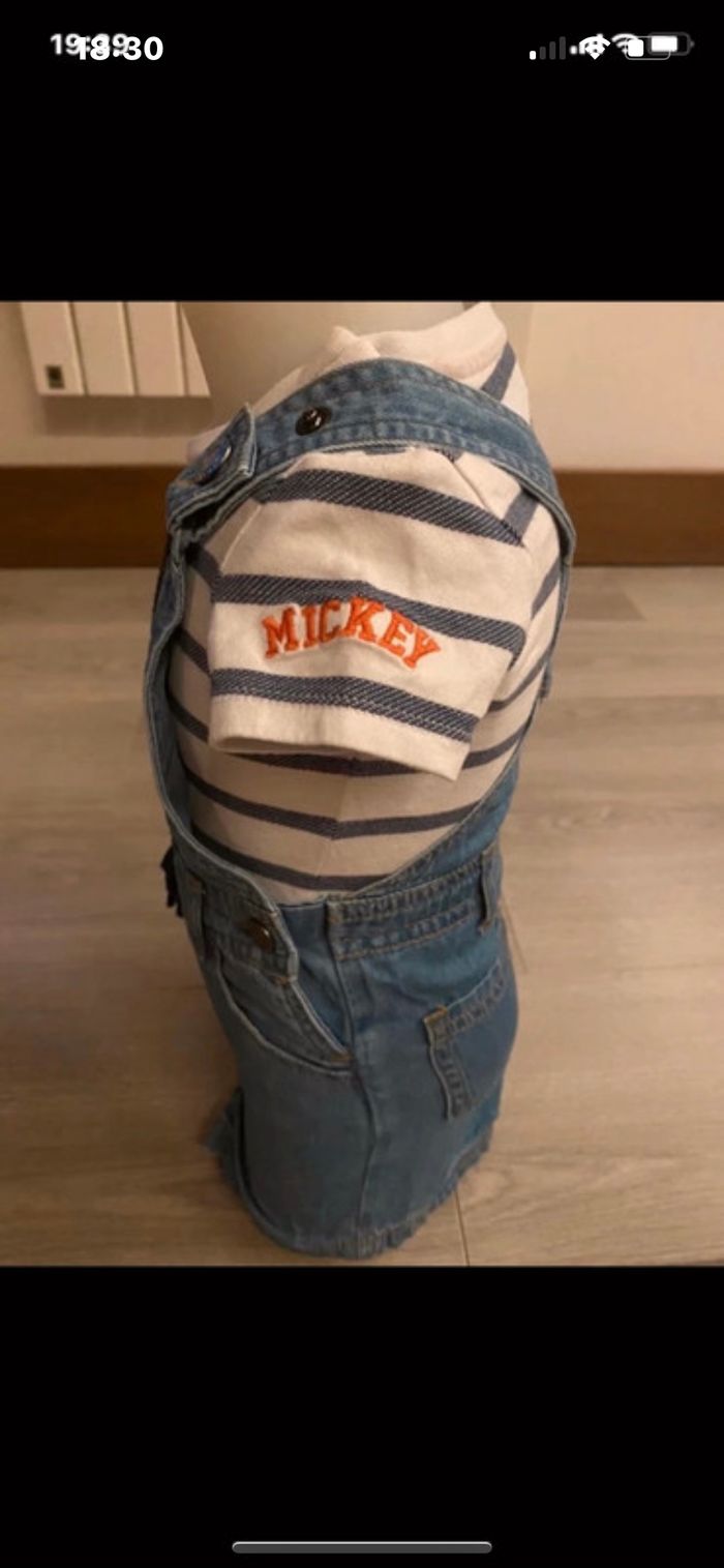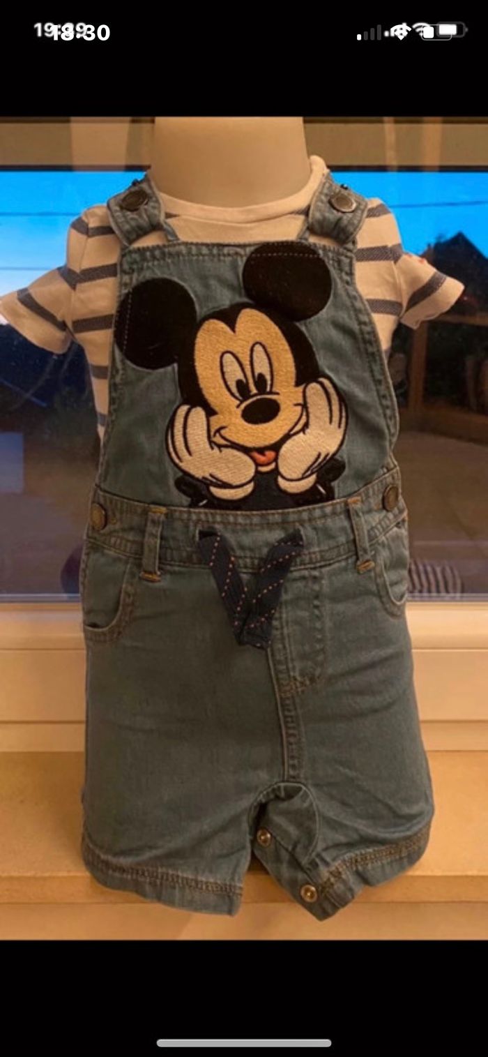Très joli ensemble salopette short en jeans avec son tee-shirts Mickey …en parfait état…taille 74…de marque C&A