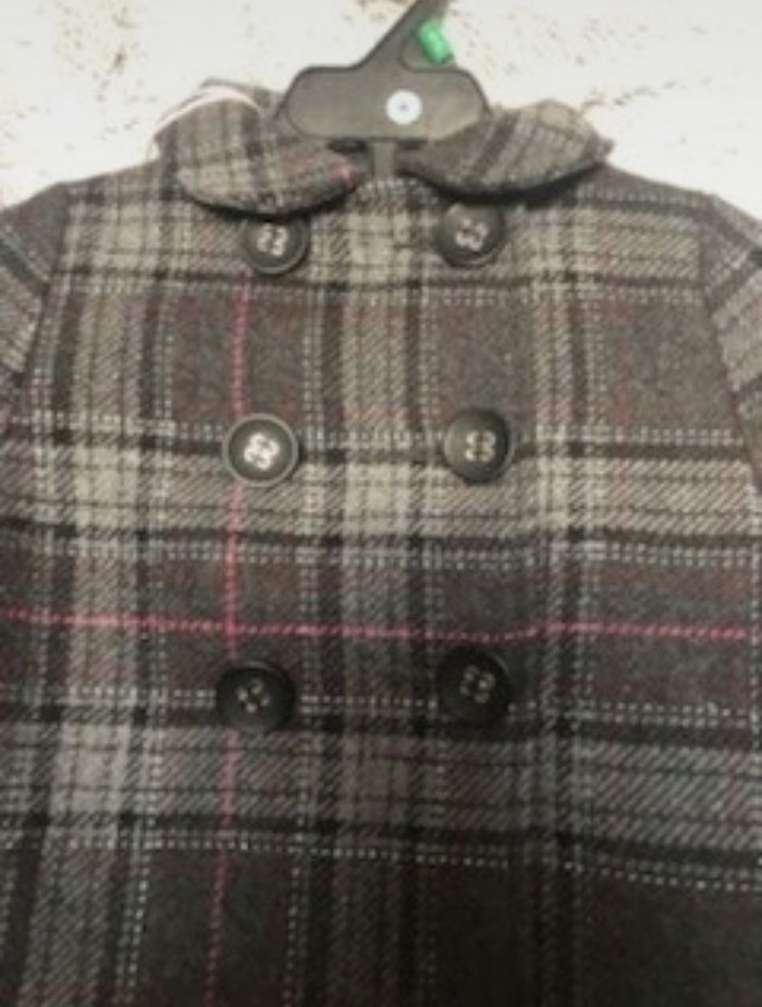 Caban à carreaux  Col rond. Fermé devant par un double boutonnage et un bouton intérieur.  Manches longues avec large empiècement au bas de manches. 2 poches côtés. Dos en une partie. Entièrement doublé. Étiquette nom et lichette de suspension à l'intérieur au haut du dos. En 80% polyester, 10% polyamide, 10% laine, entièrement doublé 100% polyester. Prix : 15 € #sisterkayafille2ans Réf : 6020951- c.bh