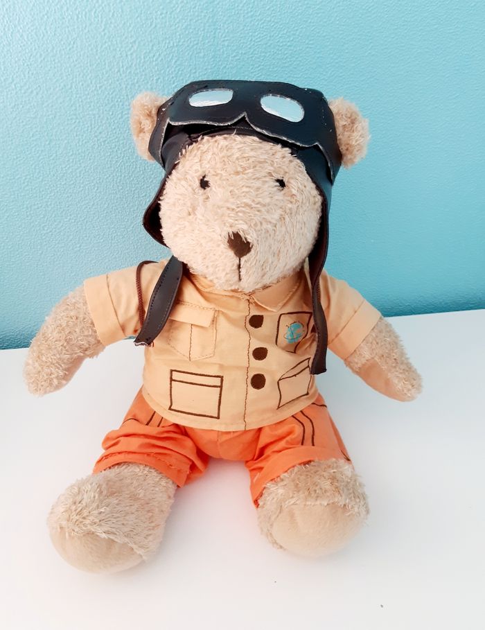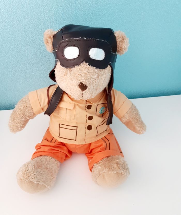 Peluche ourson explorateur Douce au toucher Dimensions environ 23 cm en position assis Il porte un petit sac à dos avec un ballon monde gonflable à l intérieur.