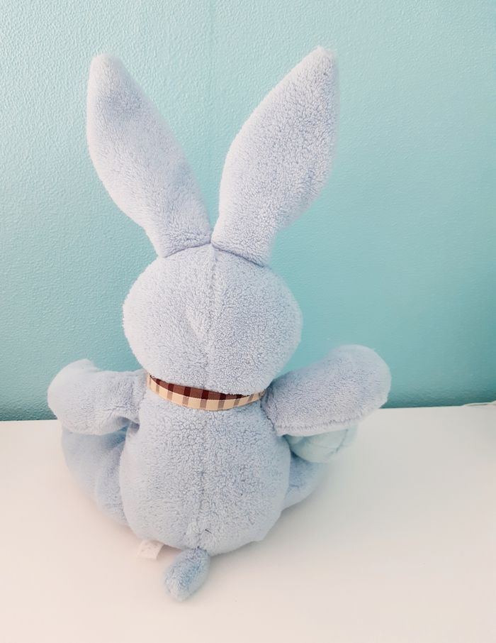 Peluche lapin bleu Avec une balle sous le bras Douce au toucher Dimensions environ 34cm en position assis