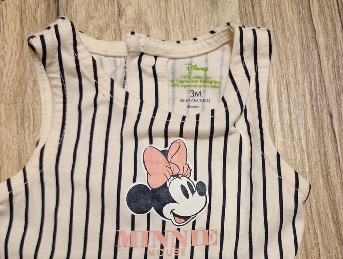 Robe Minnie Marque disney Matière coton Couleur beige ligné bleu Pressions encolure arrière Taille 3 mois /52-62cm (6 kgs) Jamais porté neuf