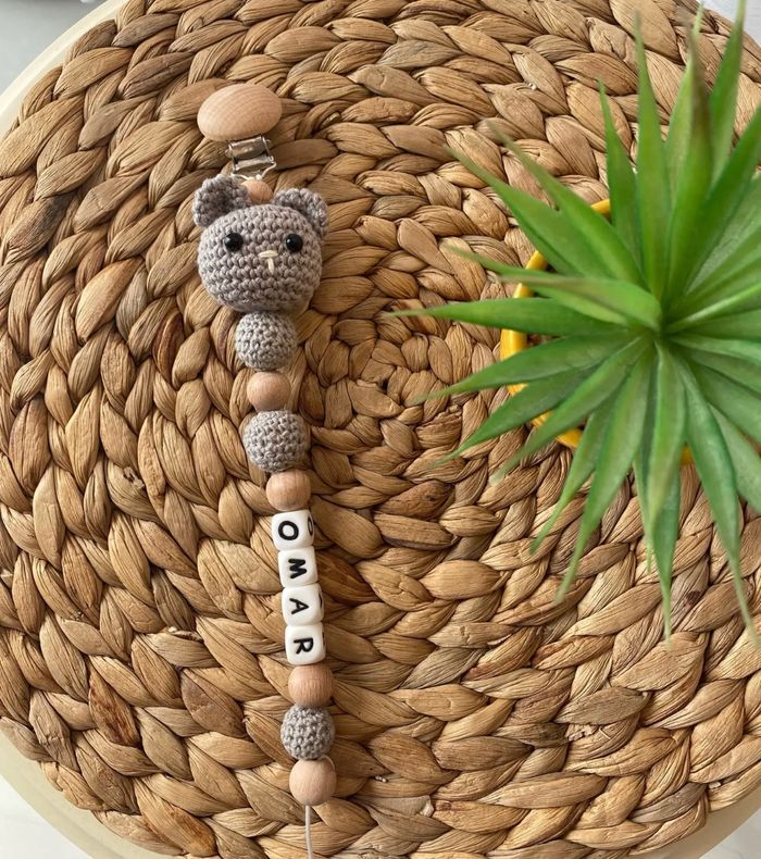 Attache tétine personnalisé au crochet ,en silicone ou en bois au souhait de l’acheteur . Personnalisable au choix de l’acheteur que ce soit la couleur comme le prénom ou le thème . Le fil est doublé pour plus de sécurité tout le long de l’attache tétine. N’hésitez pas à me demander et regarder mon dressing. Une photo vous sera envoyée avant l’expédition pour vous ayez un aperçu du rendu. Tous les produits sont réalisés avec du materiel spécial conçu aux bébés , enfants.