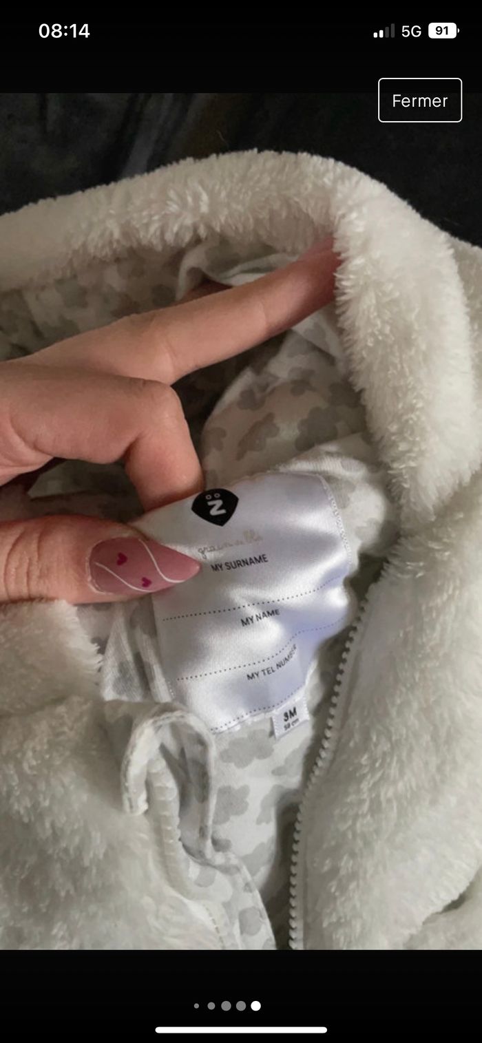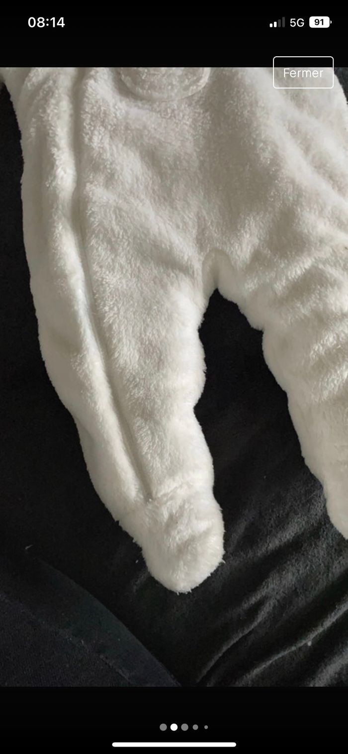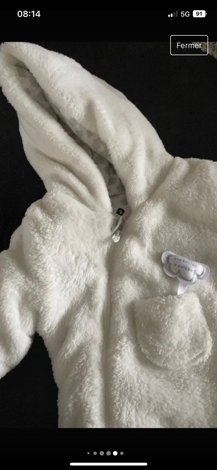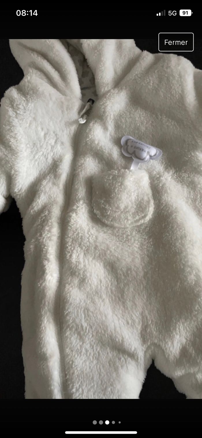 Combinaison bébé blanche, En bon état elle a pas mal servi mais elle est encore en bon état Taille 3 mois
