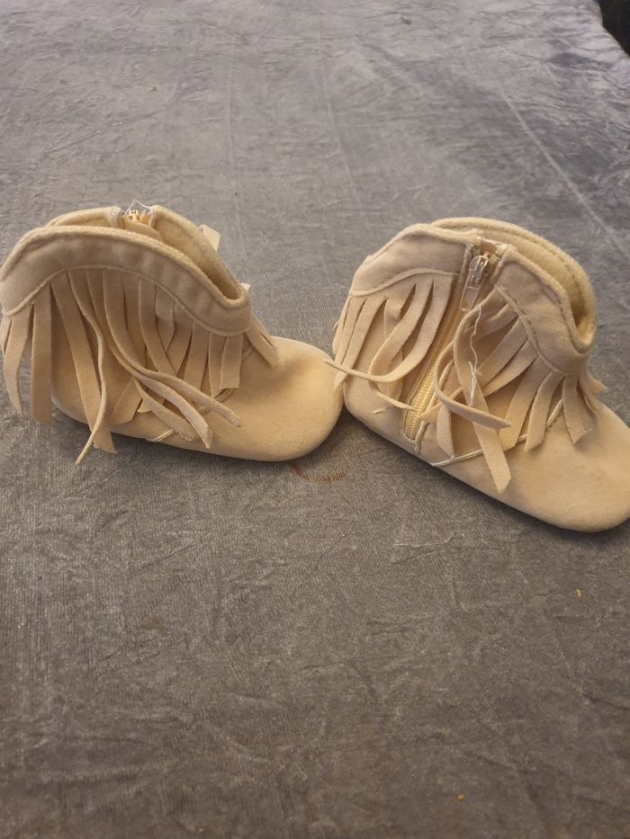 Bottine bebe fille a frange fermeture éclair beige très bon etat