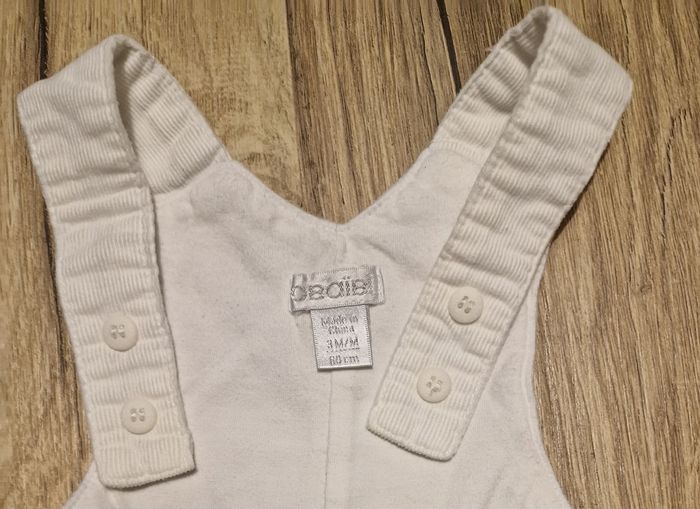 Salopette mixte Marque OBAIBI Matière velour côtelé doublé coton Couleur blanche Boutonnière côtés et épaules Pression entre jambe Taille 3 mois /60 cm Très bon état
