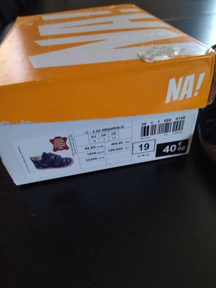 Chaussures bébé fille pointure 19 Marque Na Acheté chez Gémo fin Janvier 2023 Vendues avec leur boîte. Très bon état. Chaussures premier pas, se plie en deux