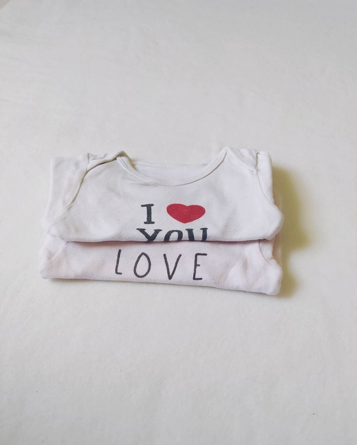 3/6 mois Du rouge à déteint sur le body Love Ils ont subi les lavages à 90 Peuvent être offert pour 10e d'achat