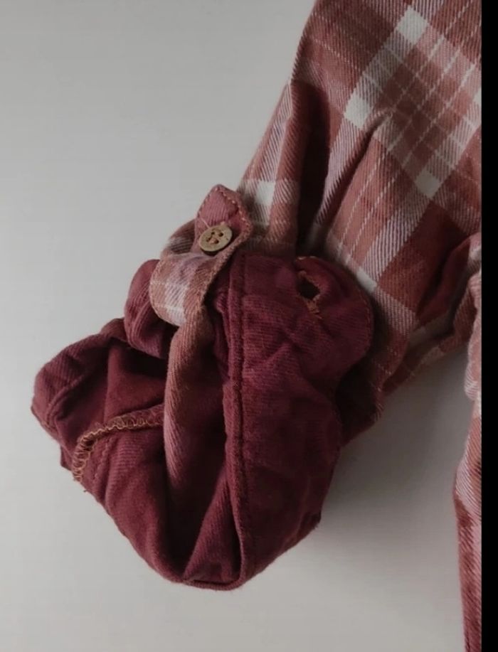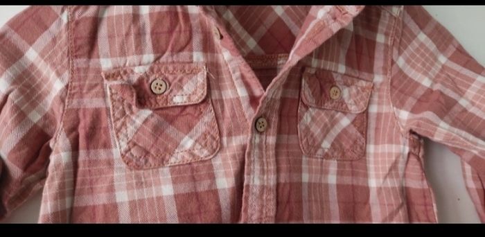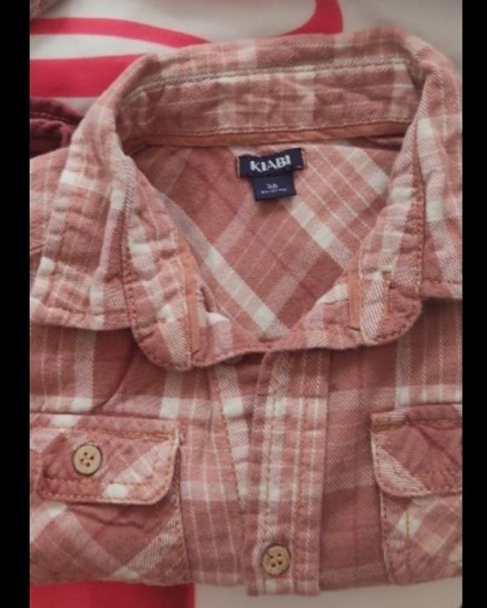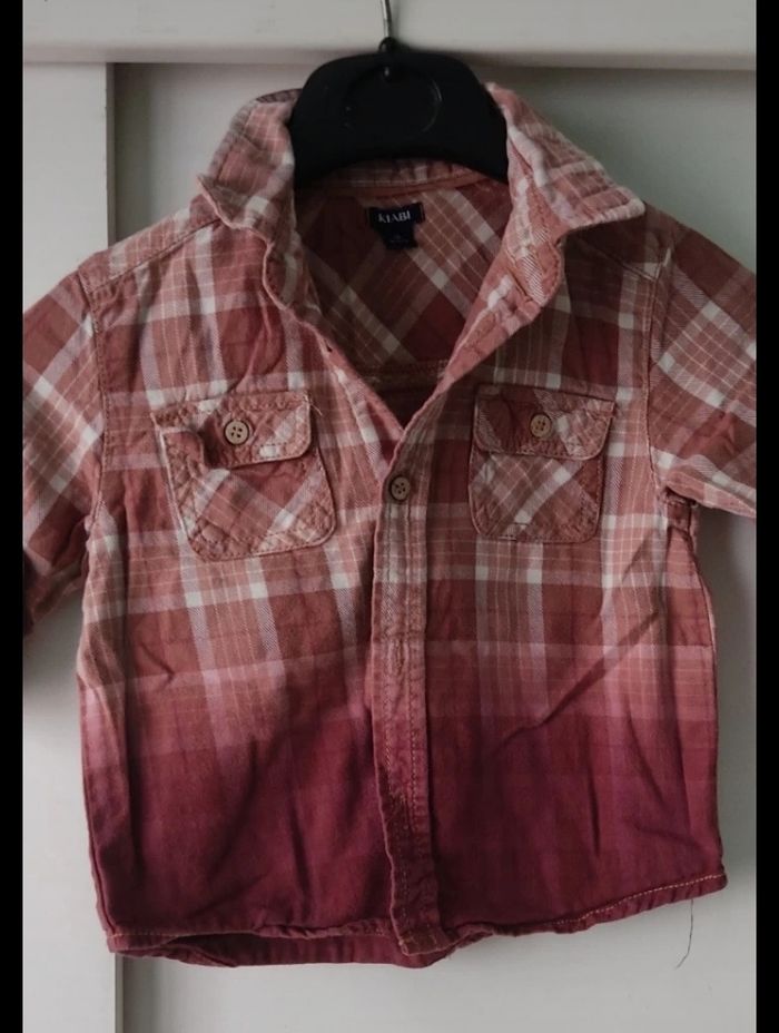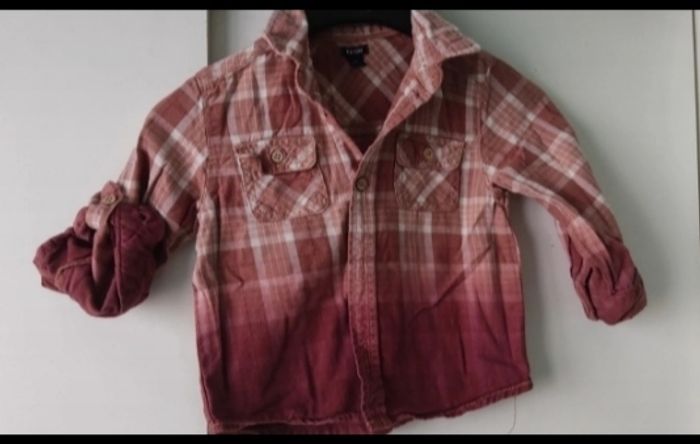 Chemise tons automnales dégradés de saumon foncé à bordeaux Mise 3/4 fois Très bon état Carreaux et pochettes sur le devant Manches pouvant être mises en 3/4 Taille notée : 3ans/ 90-97cm Marque : Kiabi Prix négociables dans la limite du raisonnable