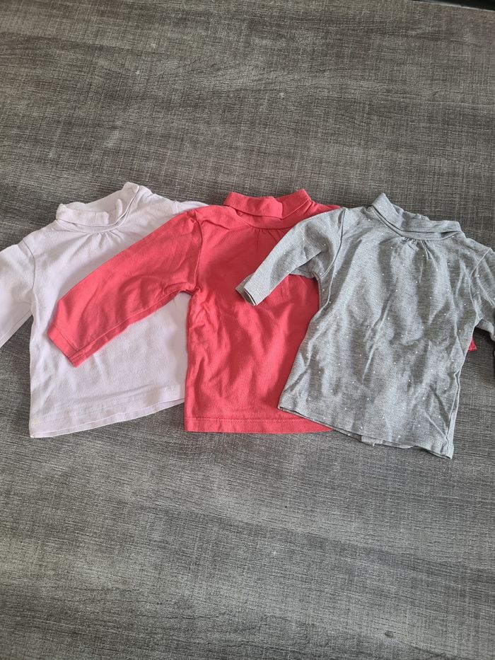 3 tee-shirts col roulé manches longues Très bon état Taille 1 mois