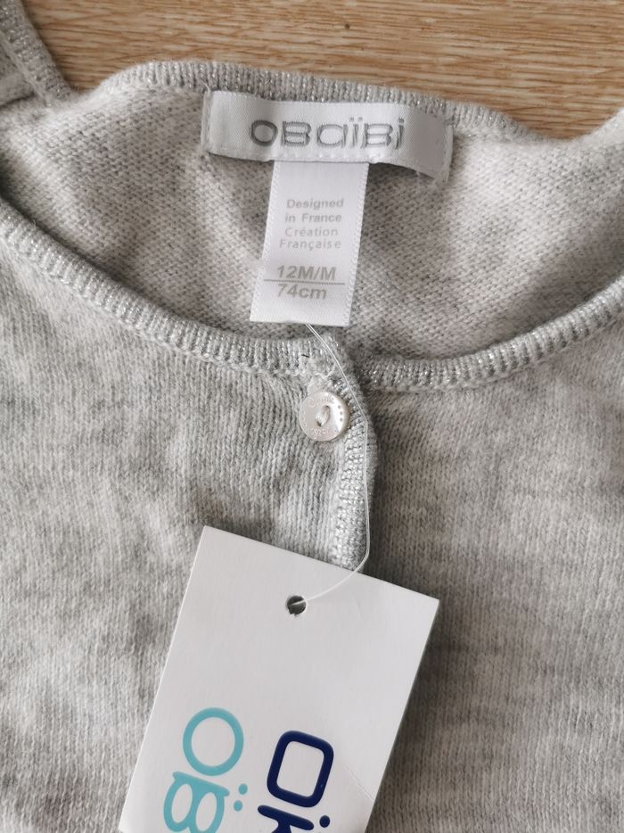 Veste fille grise 12 mois de la marque obaïbi neuve avec étiquette