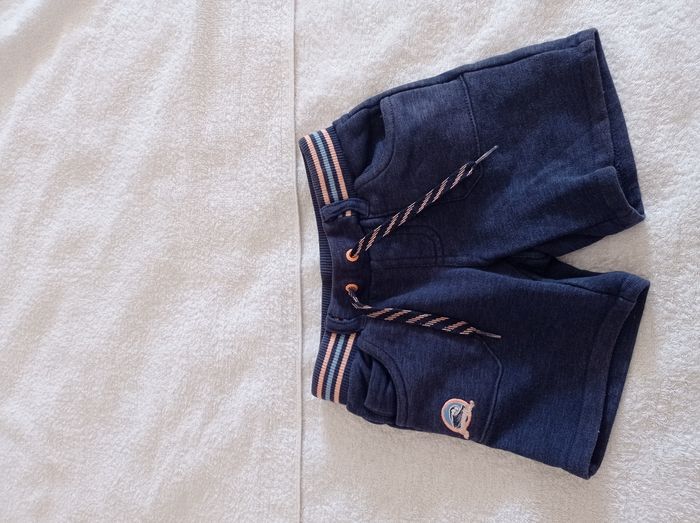 Short bermuda pure coton bleu réglage à la taille avec bouton couleur bleu voir photos taille 24 mois 92 cm serrage à la taille avec cordon voir photos super confortable pour l'été