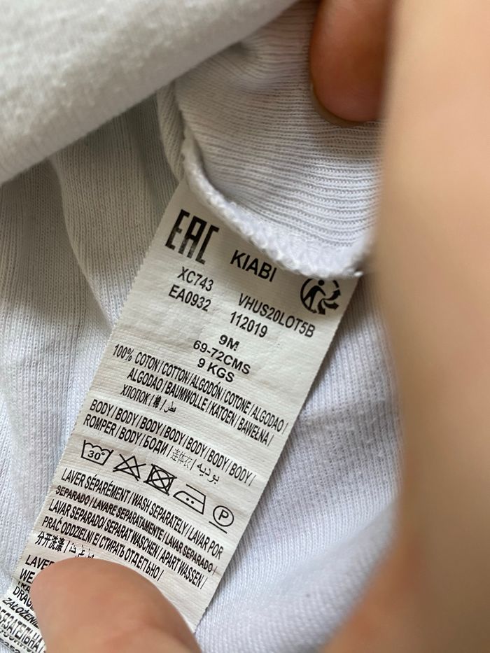 Body à manches courtes Matière : coton Âge : 9 mois / 74 cm Utilisation : pressions à l’entrejambe, passage par la tête Marque : Kiabi #tiffanie4439_9mois