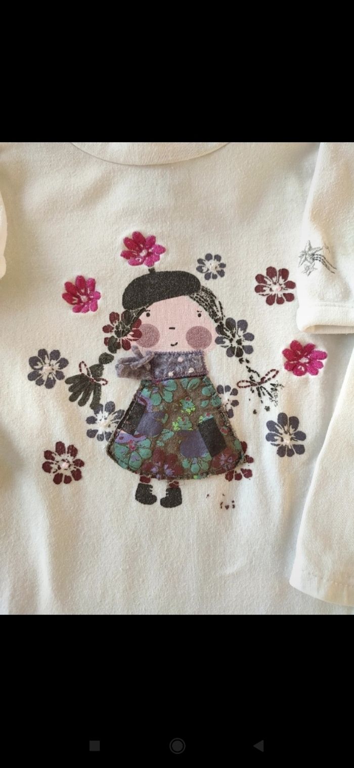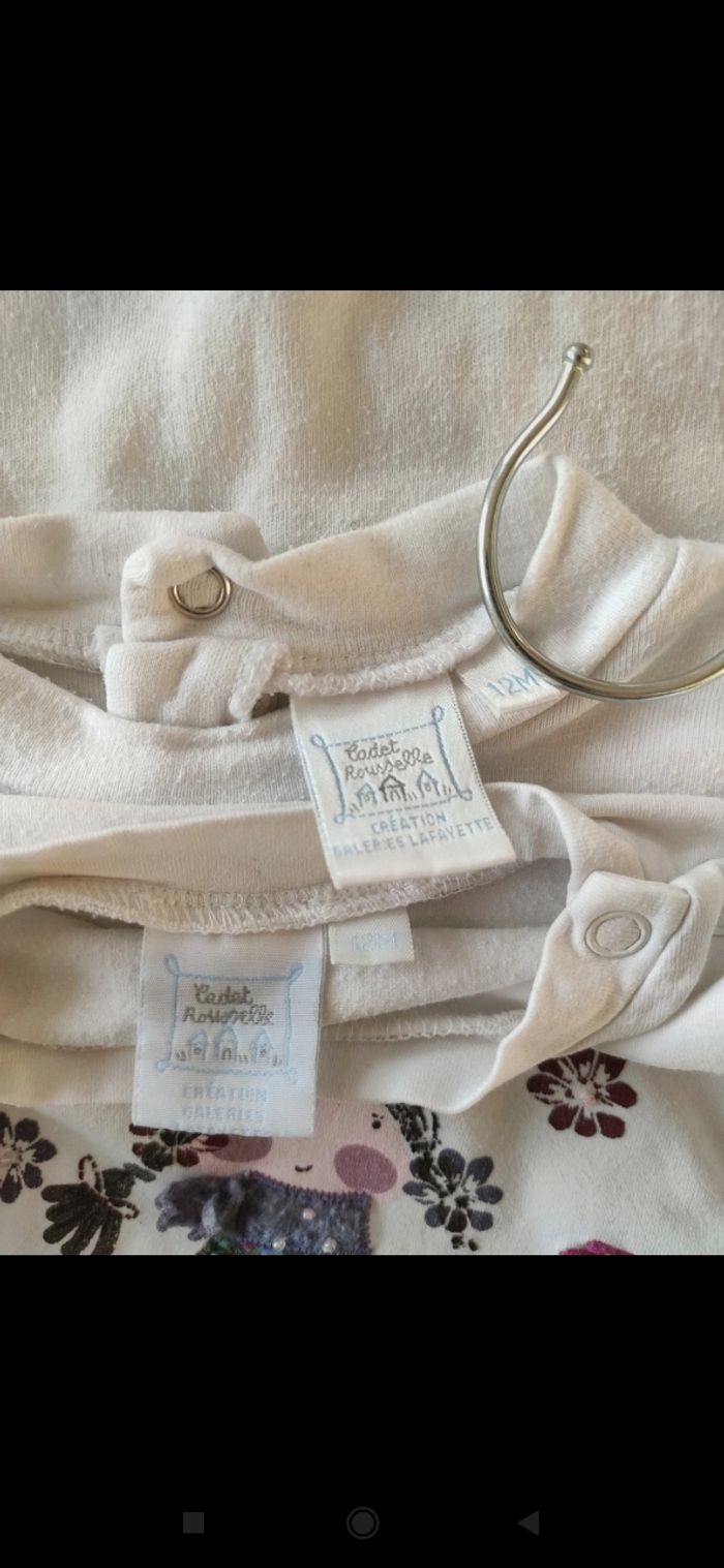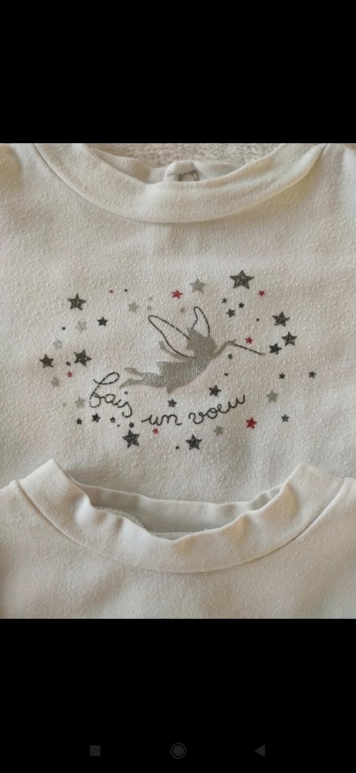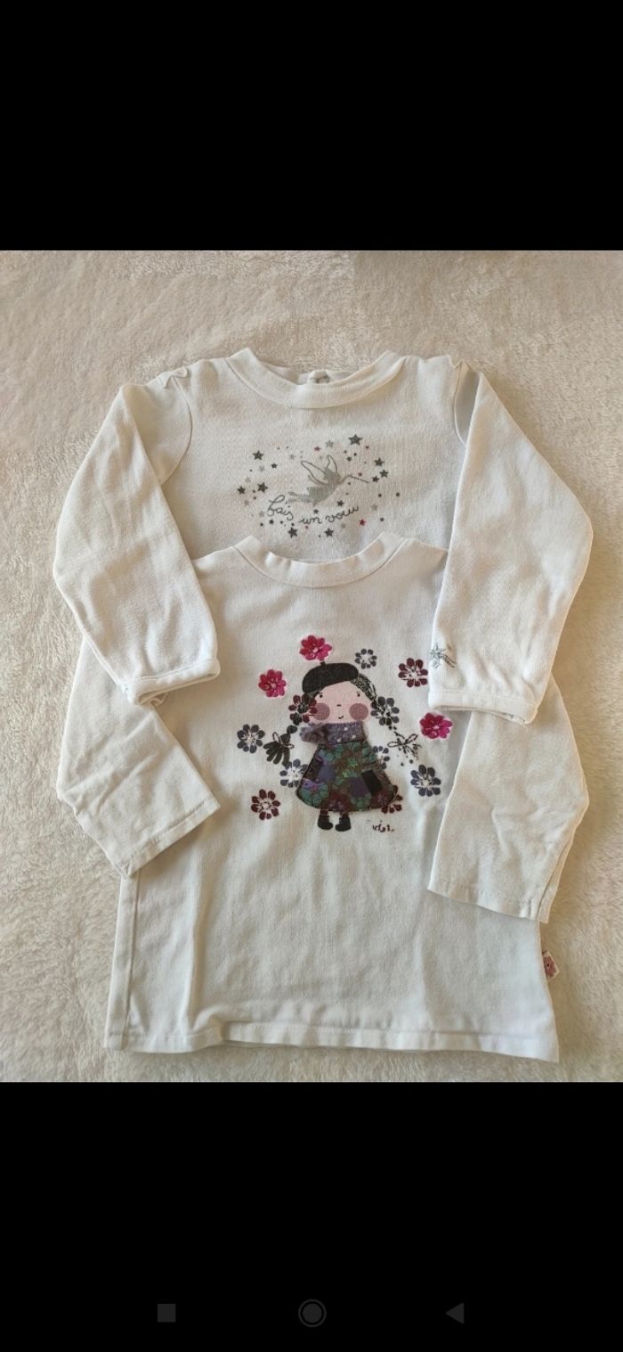 Lot de 2 T-shirt Modèle fée : boutons pression dans le cou à l'arrière. Modèle petite fille : boutons pression sur l'épaule gauche. Un peu jauni dans le cou.