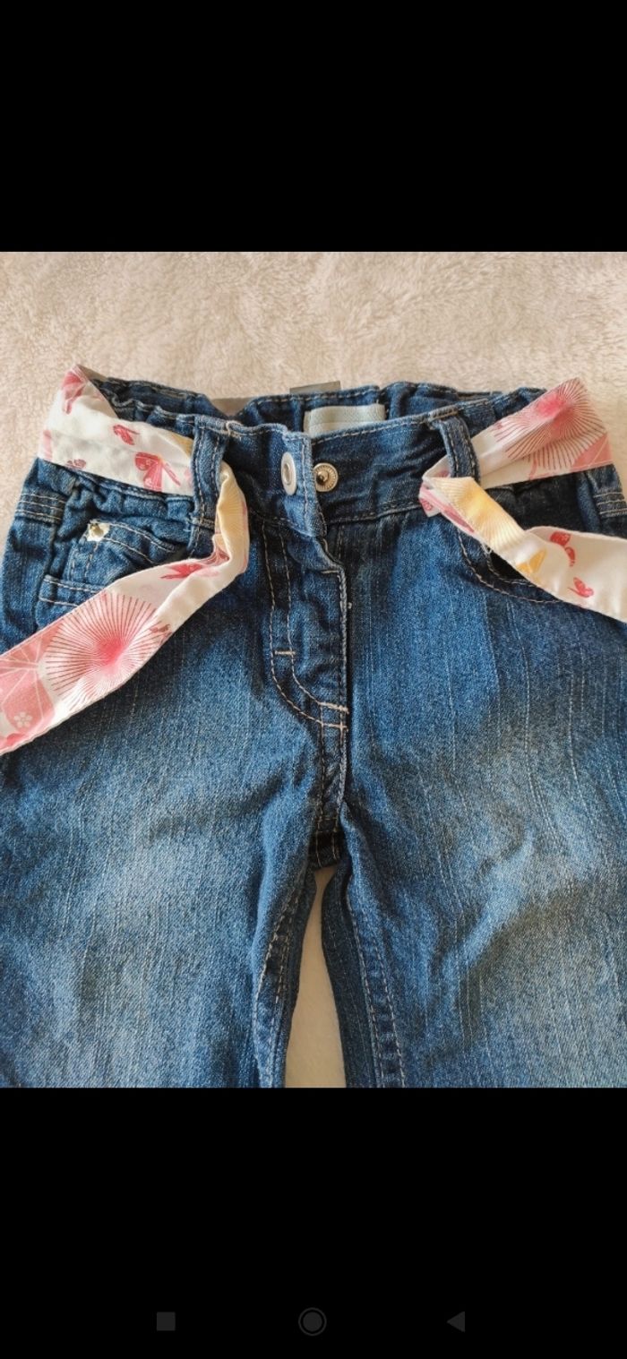 Jeans avec élastique réglable à la taille + bouton pression. Ceinture à fleurs