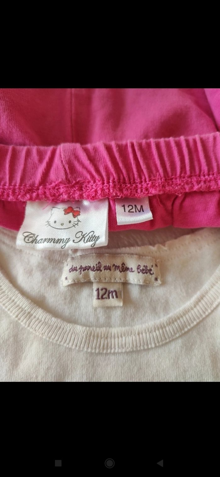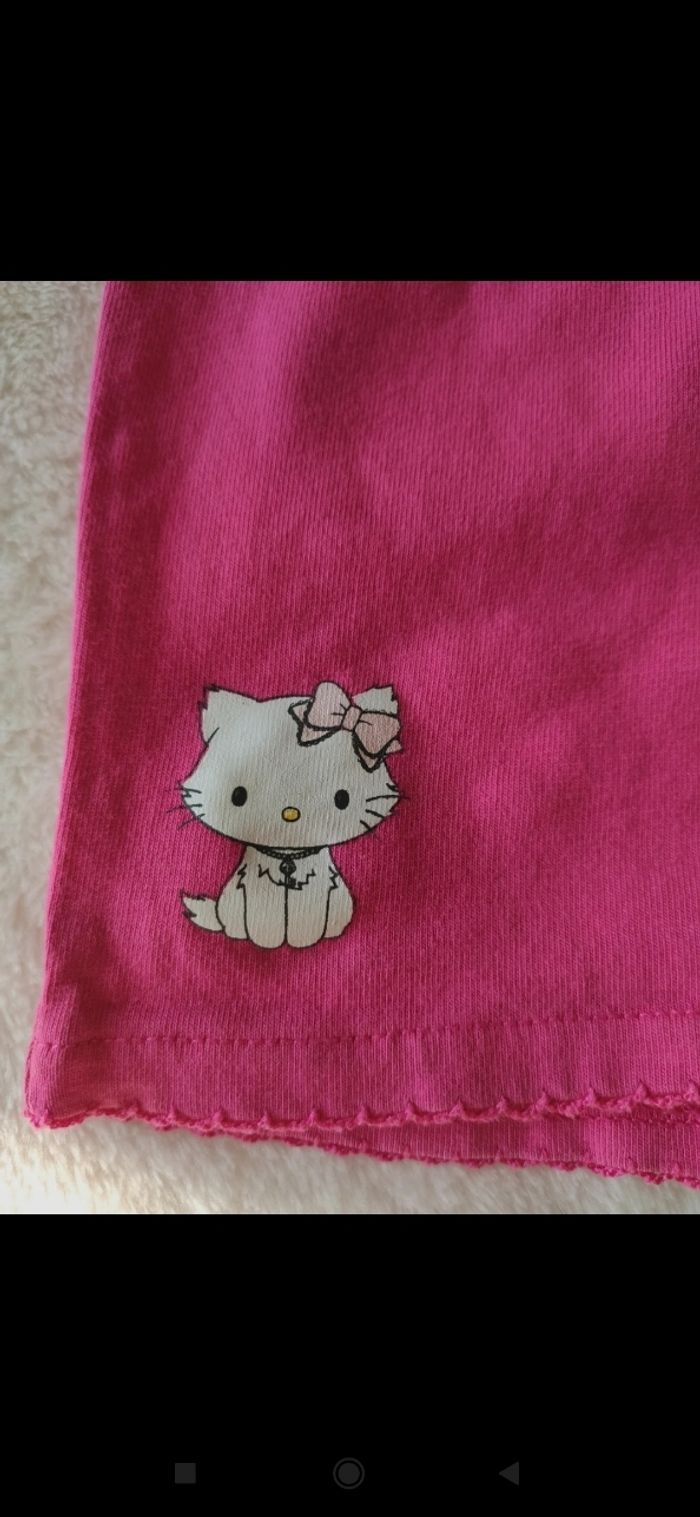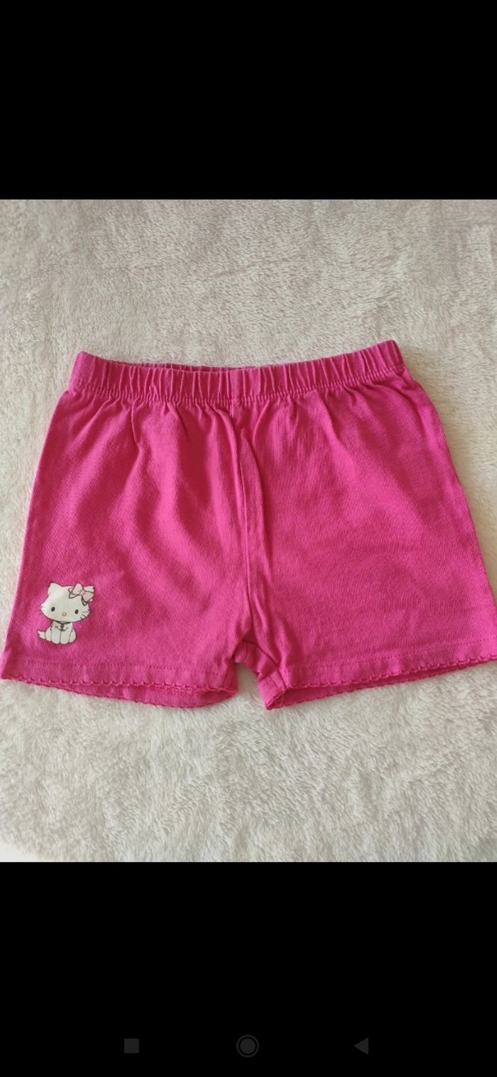 Short rose, marque Charmmy Kitty. Élastique à la taille. Débardeur blanc, marque Du pareil au même bébé.