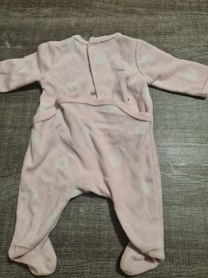 Pyjama 1 pièce en velours Rose pâle à pois blanc Très bon état