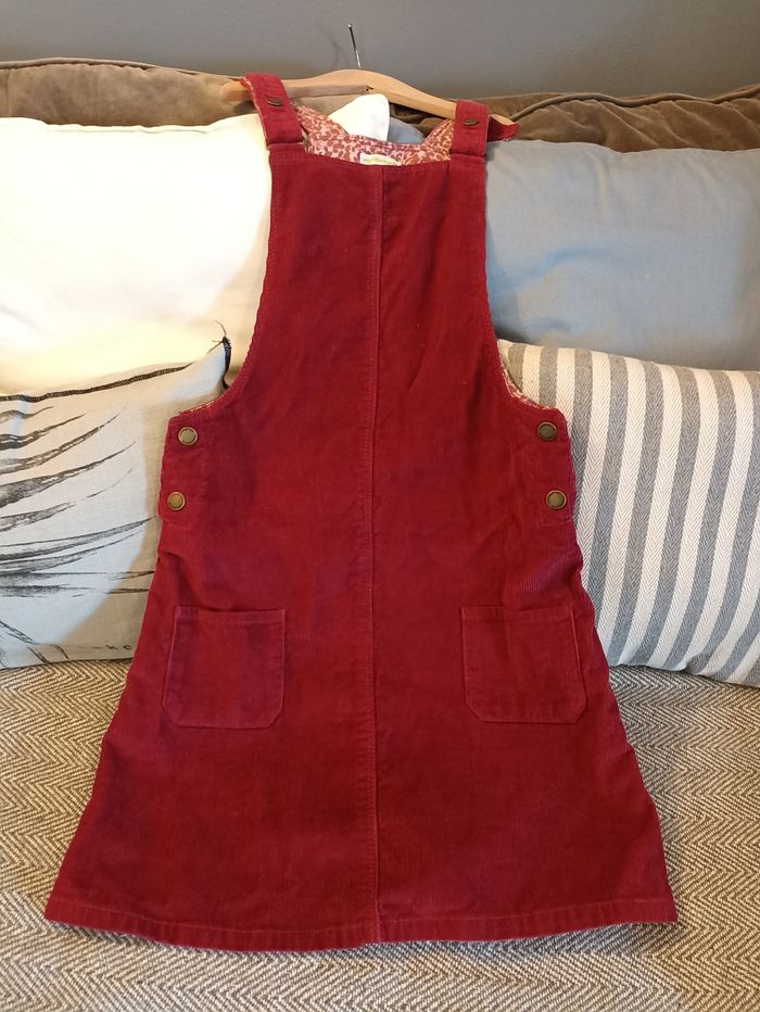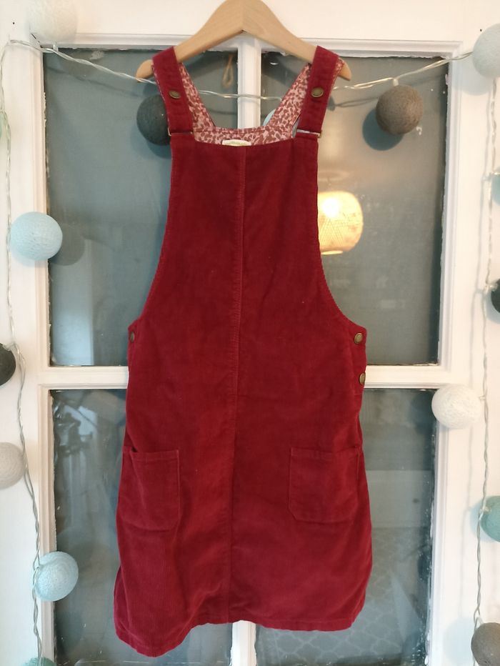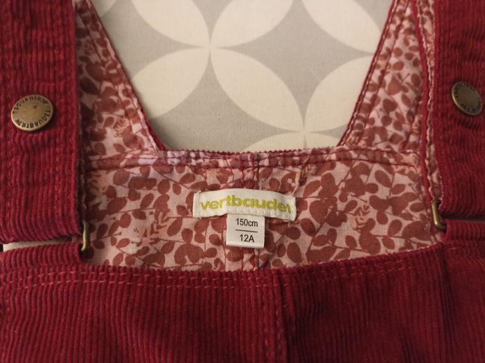 Robe salopette velours rouge foncé proche bordeaux. Bretelles réglables. Comme neuve, jamais portée. Vertbaudet