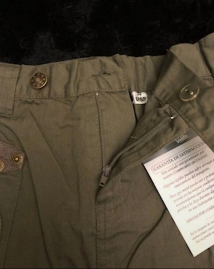 Jupe courte VENCA Ceinture plate à passants. Fermée par zip et bouton. Découpe fantaisie et détails brodés devant. En 100% coton Coloris : kaki Taille : 12 ans Prix : 10 € #sisterkayafille12ans Ref : a.hi - 6396161