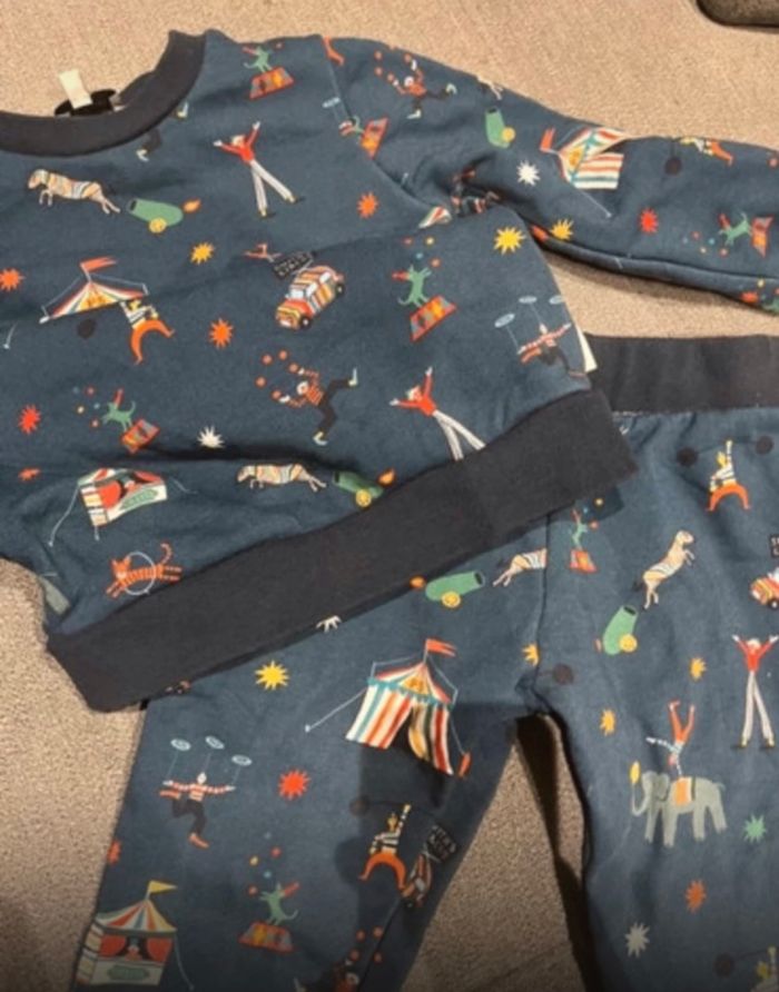 Édition limité Ensemble peu porté Taille 3 ans mais taille petit si votre enfant est en haut de la courbe … je dirais plutôt du 2 ans. Modèle Circus. Matière jogging.