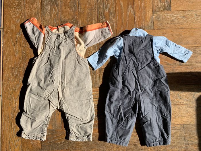 2 ensembles Sucre d’Orge Salopettes + t shirt manches longues