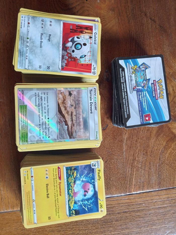 Lot 358 cartes pokemon 129 cartes françaises 114 cartes anglaises 115 cartes dresseurs Très bon état ,sans double 40 cartes à codes jcco offertes