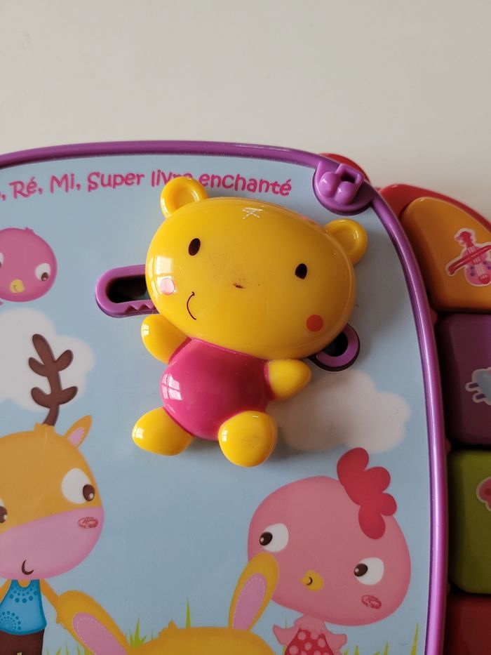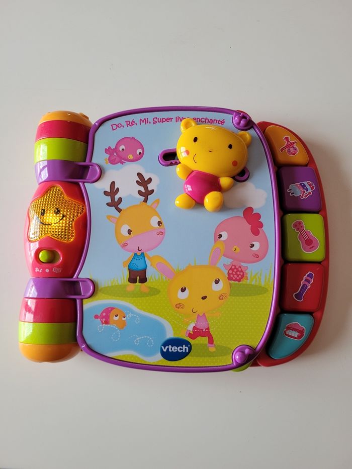 Do ré mi super livre enchanté de Vtech De 6 à 36 mois Fonctionne parfaitement Quelques traces sur l ourse devant et sur la reliure du livre (voir photos)