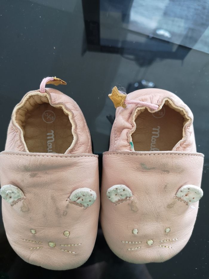 Moulin Roty Pointure 12/18mois Semelle et revêtement en cuir Porté pendant 5mois Tache qu'on n'arrive pas à enlever sur le dessus Acheté neuf 44,90€