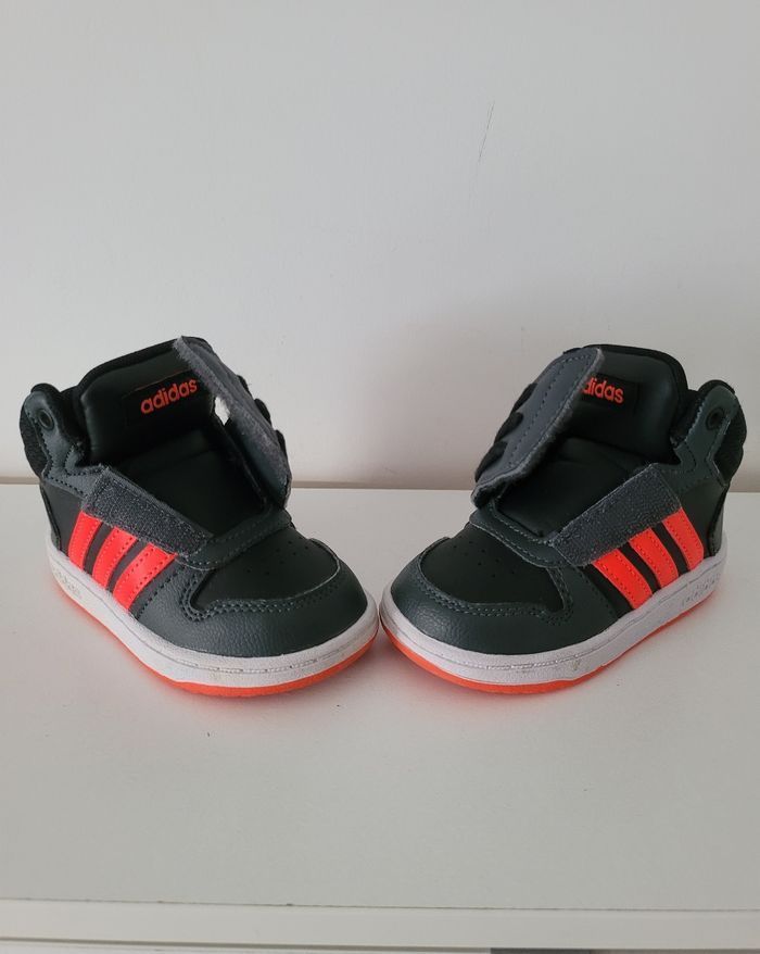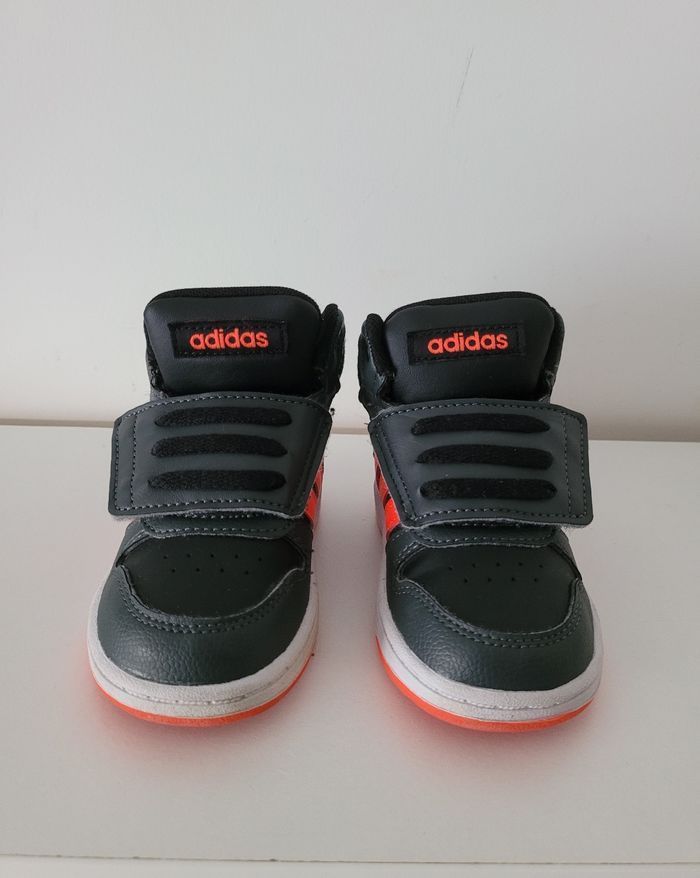 Baskets montante Adidas à scratch pointure 22. Peu porté en très bon état.