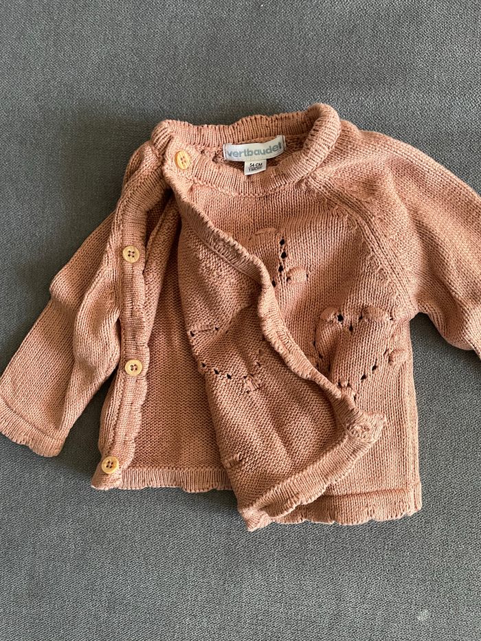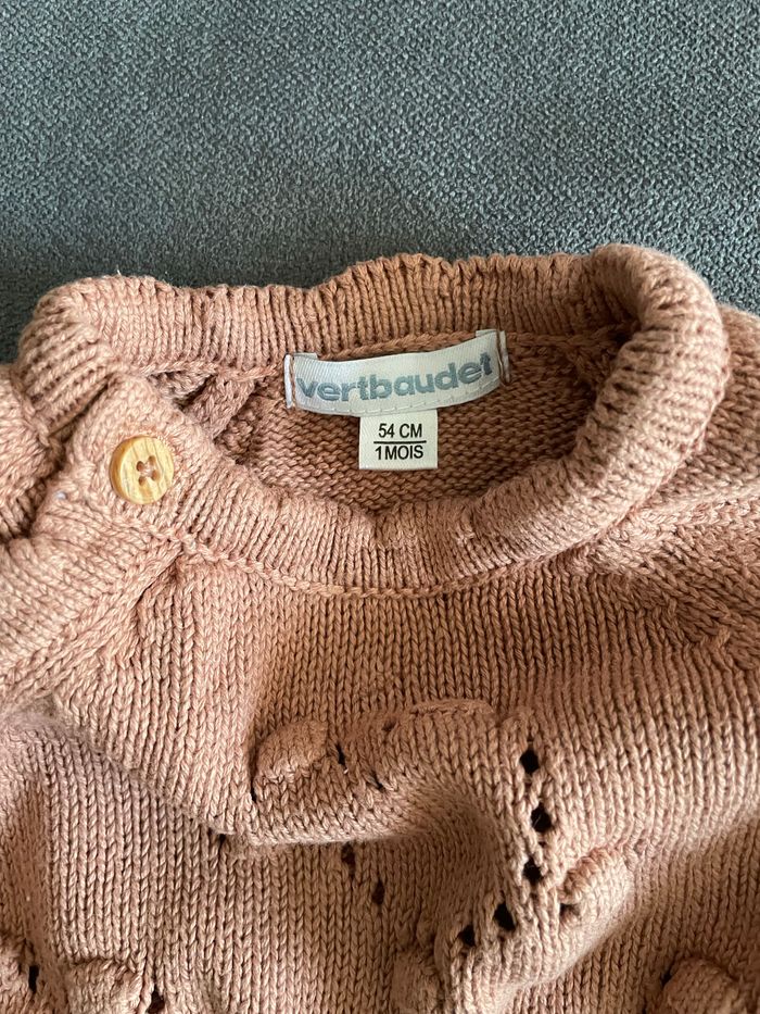 Pull fille Taille : 1 mois Marque : Verbaudet Très pratique avec l’ouverture sur le côté !