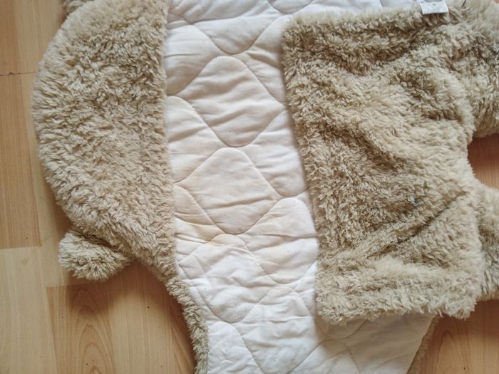 Une à pris la couleur de bébé Tienne chaud pour votre bout, la meilleure est celle en forme d'ourson, reproduit les bras de maman, je vous les recommande ! Taille 0/6mois