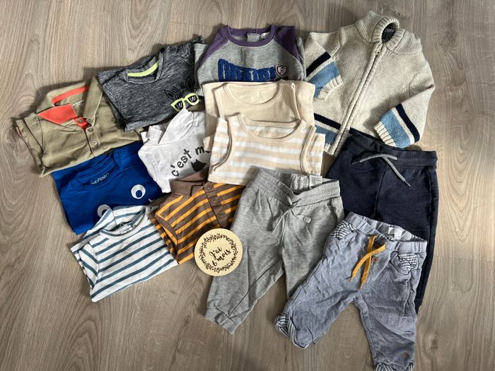 Lot 6 mois 13 pièces 3 joggings 2 Marcel 6 tee shirts manches longues 1 gilet Diverses marques