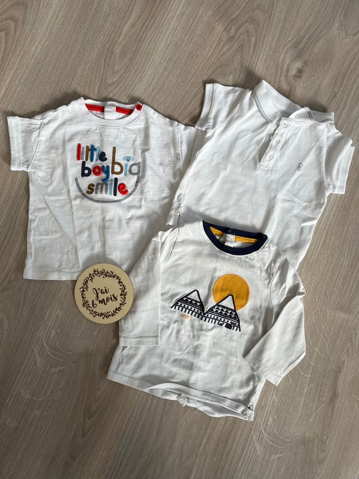 Lot 3 teeshirt Obaidi 6 mois : 1 polo, 1 tee shirt manches courtes, 1 tee shirt manches longues Possibilité d’acheter à l’unité.