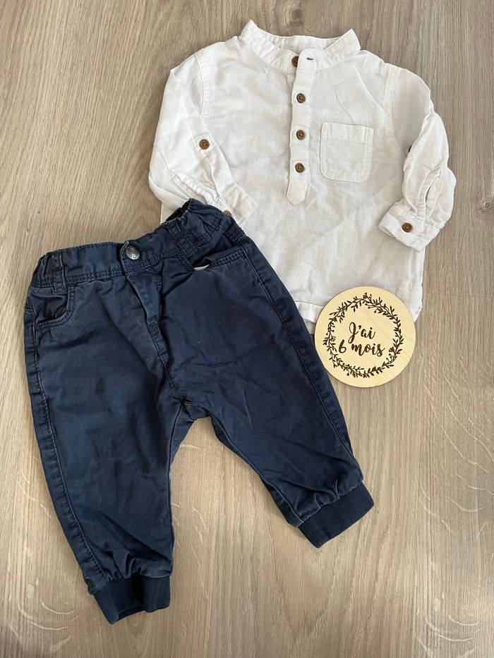 Chemise blanche kiabi Pantalon bleu marine TAO 6 mois