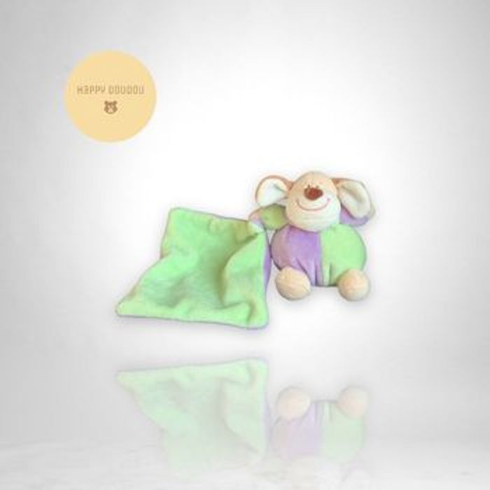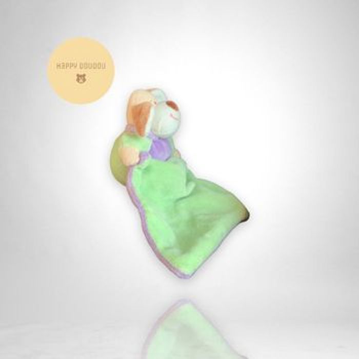 Peluche Doudou chien mouchoir vert violet zeeman A343