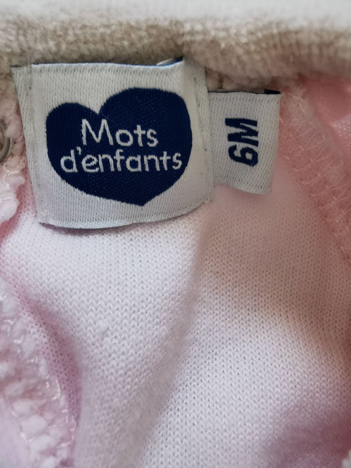 Pyjama velour de marque Mots d'enfants. Taille 6 mois. Porté 2 fois.