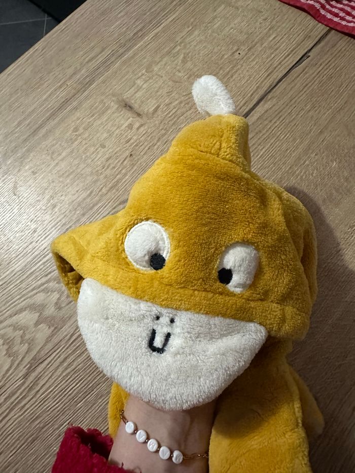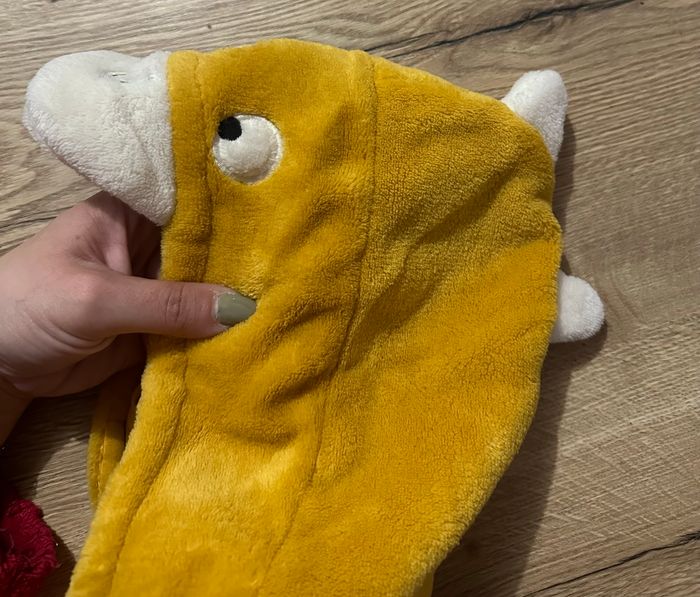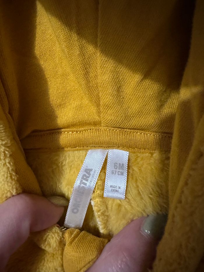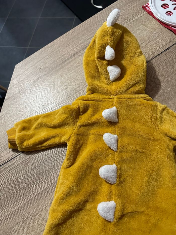 Combinaison Toute douce , pilou Jaune , dinosaure, avec les écailles le long du dos et la tête de dinosaure sur la capuche Orchestra Taille 6 mois 67cm