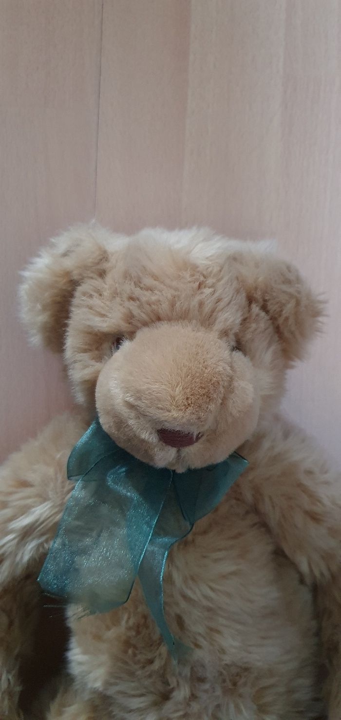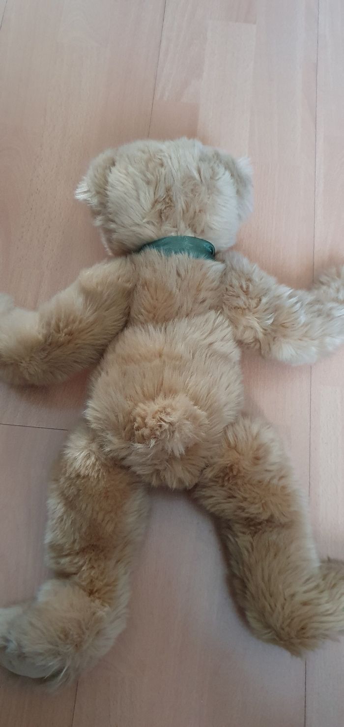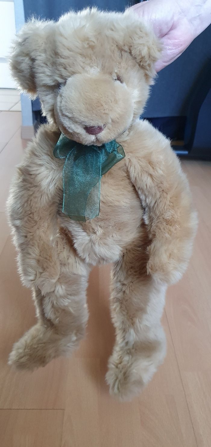 Ours en peluche marron avec noeud vert.en très bon état presque neuf. 50 cm de hauteur.