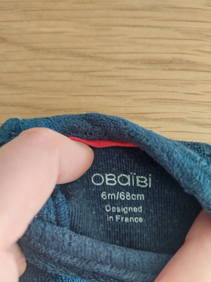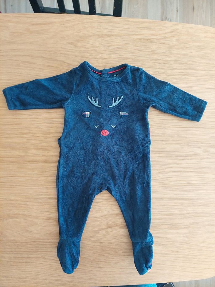 Pyjama bleu en velours avec motif 🎅 Rudolph, de marque OBAÏBI. Bon état pour les 6 mois