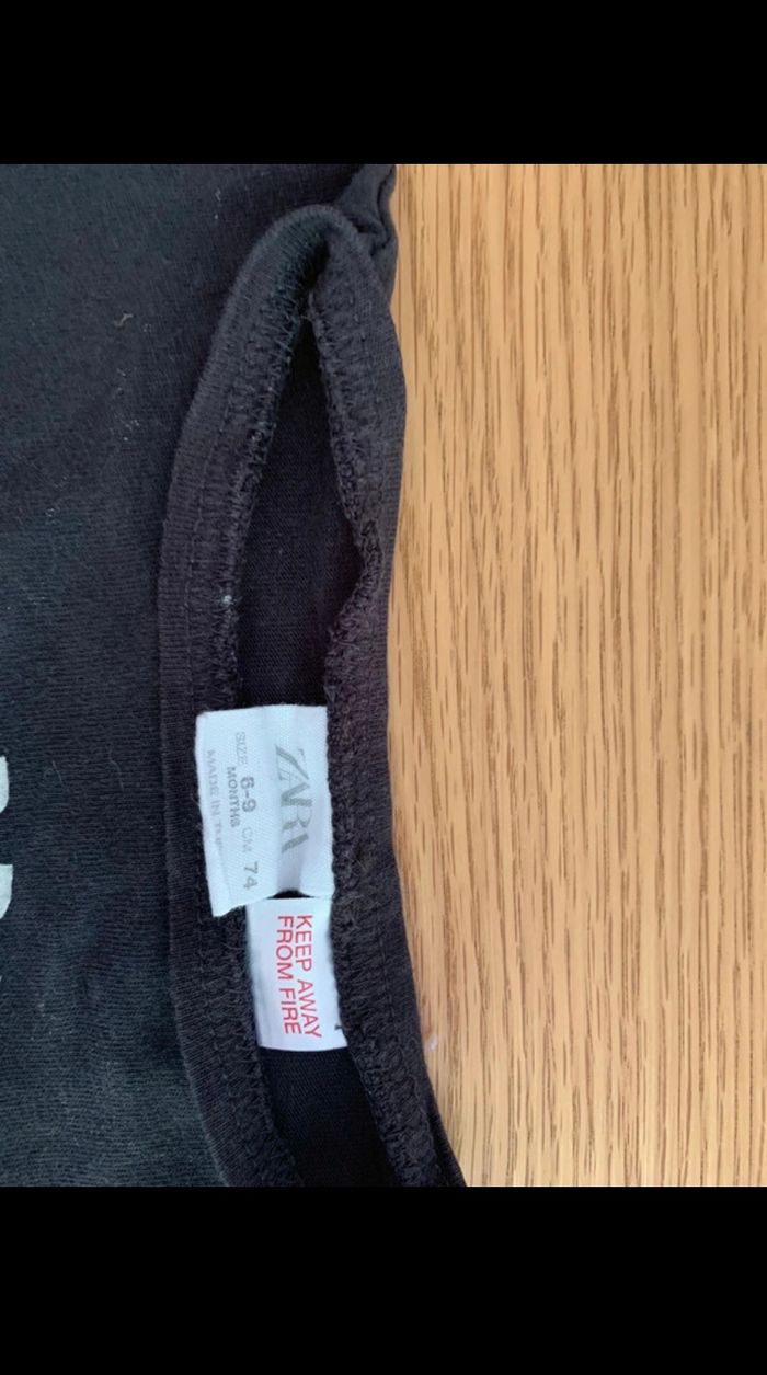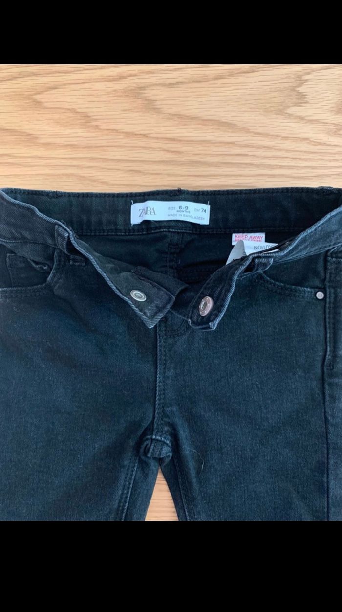 Un jean, 2 hauts= 2 tenues possibles Marque Zara Taille 6-9 mois, 74 cm Jean porté une fois car bébé dodu Un tee shirt manches longues, le devant est plus court que l’arrière Tee shirt col roulé ondulé, fermeture par l’arrière avec 3 boutons pression